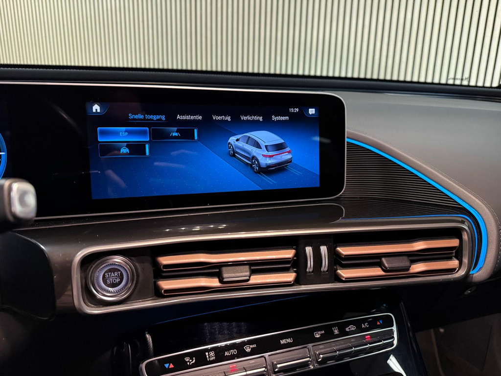 Hij levert uitstekende prestaties en doet dat met zorg voor het milieu. Maar tegelijk is de Mercedes-Benz EQC ook gewoon een auto die u volop ruimte en comfort biedt. Gas geven is er met de elektromotor niet meer bij. Stil snelheid maken wel! Sportief, stoer en net even anders dan anders, mede dankzij de AMG-styling. Een krachtige motor geeft deze auto zijn sportieve prestaties. De lederen bekleding benadrukt de luxe uitstraling van deze auto. U past de stoelen moeiteloos aan, ze zijn elektrisch in te stellen en hebben bovendien een geheugen. Tot de uitrusting van deze Mercedes-Benz behoren ook 19 inch lichtmetalen velgen, AMG-styling, warmtewerend glas, adaptieve verlichting, zwarte hemelbekleding en LED-achterlichten.