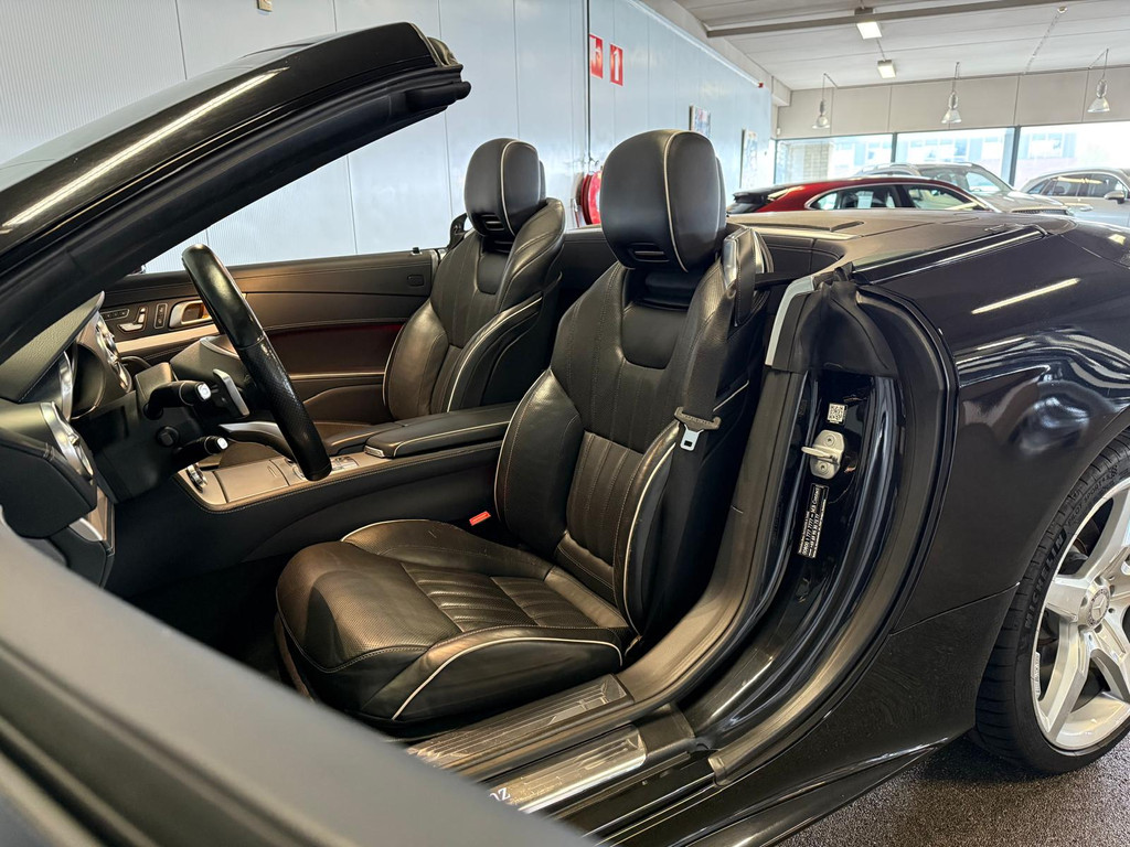 Zodra de zon zich laat zien, kunt u heerlijk genieten achter het stuur van deze cabriolet. De vooruitstrevende techniek van deze Mercedes-Benz SL-klasse vormt een harmonieuze eenheid met de stijlvolle vormgeving. Het comfort en de veiligheid staan bovendien op hoog niveau, zoals dat hoort bij een auto van een gerenommeerd Duits merk. De AMG-styling van deze auto is zowel smaakmakend als spraakmakend. De uitstekende prestaties van deze auto komen van de zescilinder benzinemotor en de automatische transmissie. Met zijn lederen bekleding is deze Mercedes-Benz comfortabel en stijlvol. Tijdens gure dagen is het prettig zitten in de verwarmbare voorstoelen, die bovendien zijn uitgerust met massagefunctie. Neem plaats op de comfortabele stoelen. Dankzij de elektrische bediening en het geheugen is het eenvoudig om hierin de beste zitpositie te vinden. In weer en wind een cabriosensatie? Dat kan met het riante glazen panoramadak. Tot de uitrusting behoren ook 19 inch lichtmetalen velgen, LED koplampen, AMG-styling, warmtewerend glas, LED-achterlichten en snelheidsafhankelijke stuurbekrachtiging.