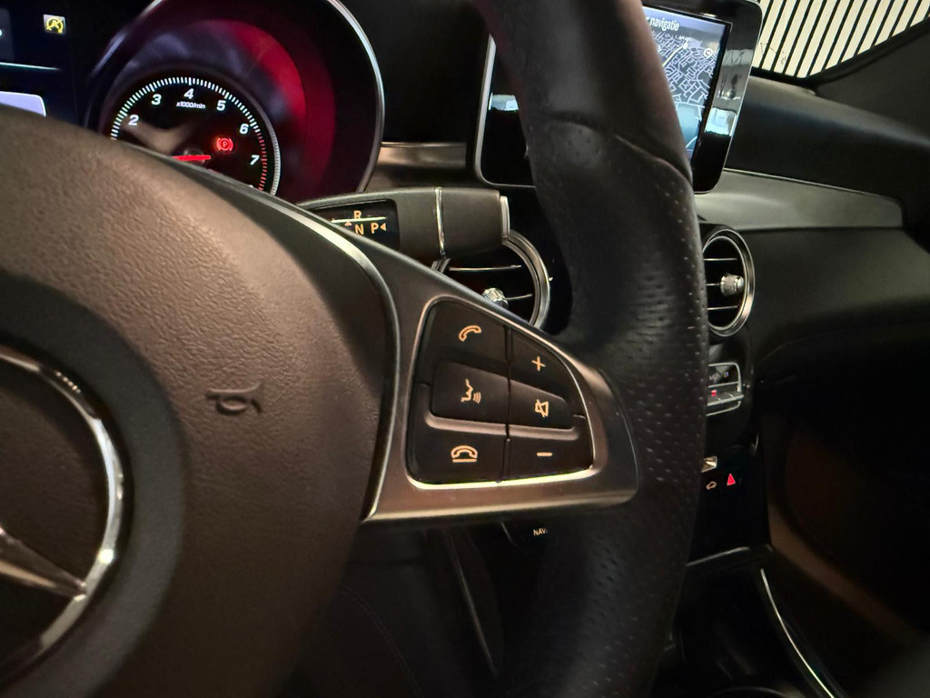 Alle technologie in de Mercedes-Benz GLC-klasse Coupé is er op gericht om uw rit veilig en gemakkelijk te laten verlopen. De AMG-styling geeft deze auto een bijzonder karakter en staat voor sportiviteit en exclusiviteit. De aandrijving komt voor rekening van een benzinemotor en een automatische transmissie. Om het af te maken is deze auto voorzien van een lederen interieur. Dankzij de elektrische stoelbediening is het gemakkelijk om de optimale zitpositie te vinden. De elektrische achterklep opent met een druk op de knop, zodat u gemakkelijk toegang heeft tot de bagageruimte. Dankzij de xenonverlichting profiteert u in het donker van een krachtige en heldere lichtbundel. Bij de zeer complete uitrusting van deze auto behoren ook LED koplampen, AMG-styling, sportonderstel, warmtewerend glas, zwarte hemelbekleding en in delen neerklapbare achterbank.